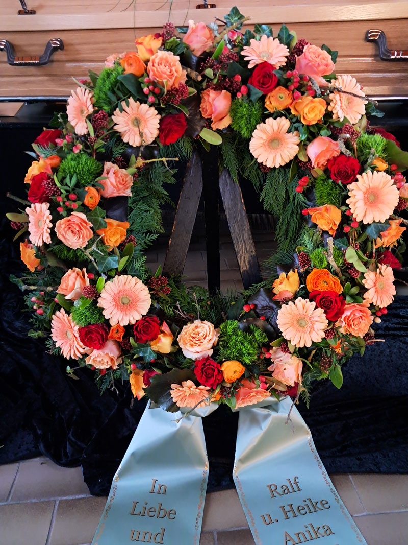 Ein letzter Gruß verdient besondere Aufmerksamkeit. Mit würdevoller Trauerfloristik helfen wir, Abschied in Schönheit zu gestalten: Sargschmuck, Sargsträuße, Trauergestecke und Trauerkränze.